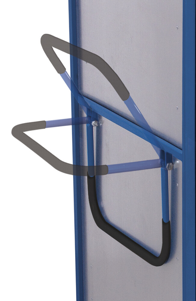 mit Schiebe-/ Ziehbügel, der eingeklappt bündig mit dem Rahmen ist und wie die um 270° zu öffnende Doppelflügeltür nicht über die Konturen des Wagens steht