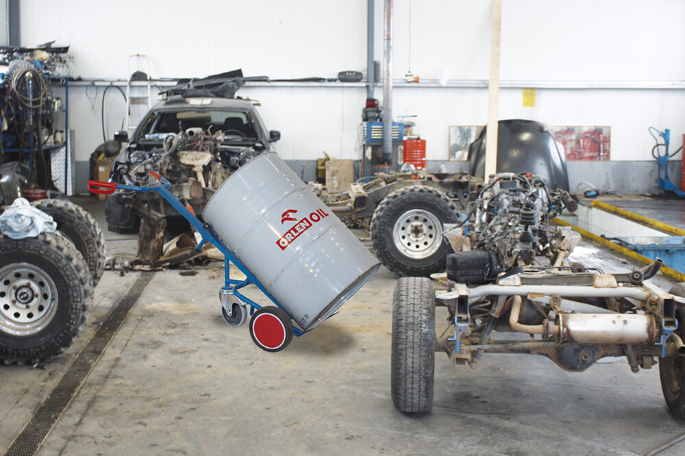 für den Transport von 200 Ltr. Stahlblechfässern mit Rand