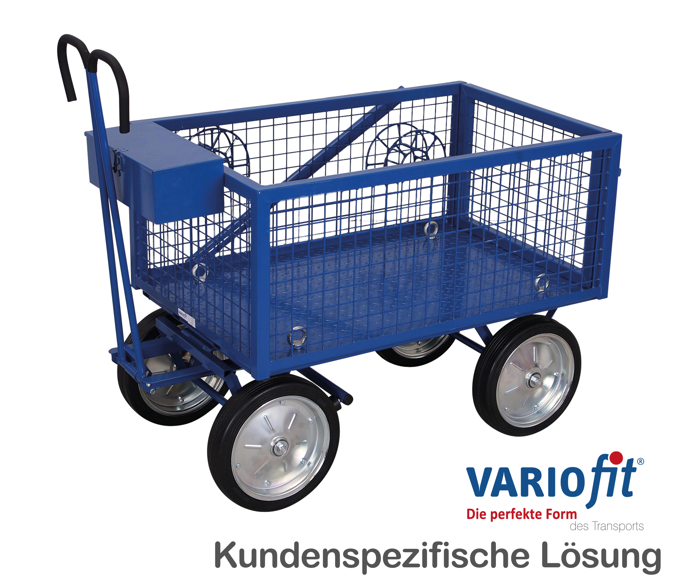 Informations sur le produit "Remorque manuelle avec 4 ridelles en tub de acier"